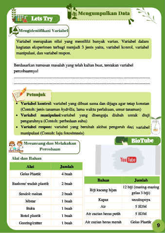 kegiatan eksperimen terbagi menjadi 3 jenis yaitu, variabel konrol, variabel