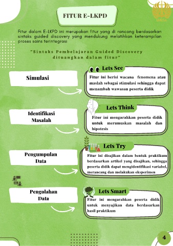 Fitur dalam E-LKPD ini merupakan fitur yang di rancang berdasarkan