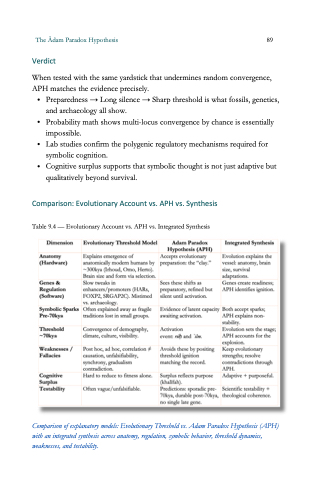 Table 9.4 — Evolutionary Account vs. APH vs. Integrated Synthesis