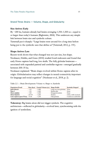 Table 2.2 — Brain Development: Volume vs. Shape vs. Symbolis