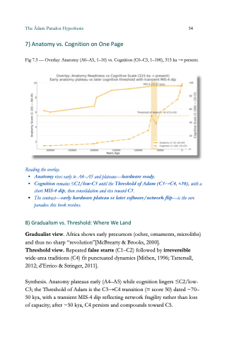 Fig 7.3 — Overlay: Anatomy (A0–A5, 1–10) vs. Cognition (C0–C5, 1–100), 315 ka → present.
