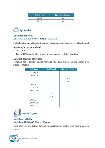 Pada aktivitas ini, kalian diminta menyelesaikan soal terkait sistem heksadesimal