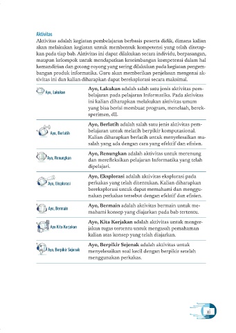 kan pada tiap bab. Aktivitas ini dapat dilakukan secara individu, berpasangan,