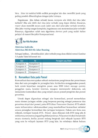 biru. Jalur ini melalui lebih sedikit perangkat lain dan memiliki jarak yang