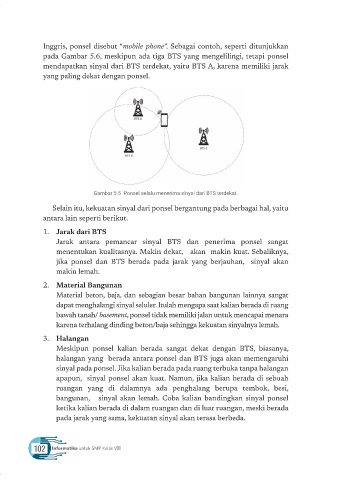 Gambar 5.5 Ponsel selalu menerima sinyal dari BTS terdekat.