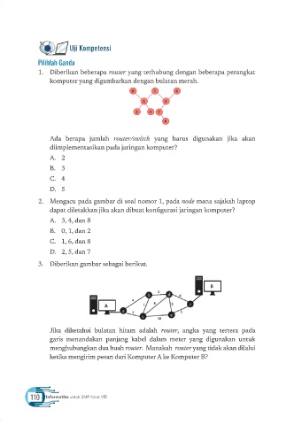 Jika diketahui bulatan hitam adalah router, angka yang tertera pada