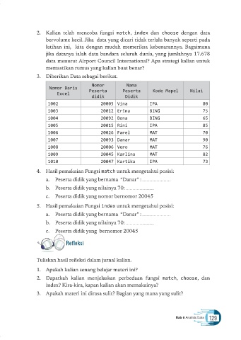 2. Kalian telah mencoba fungsi match, index dan choose dengan data