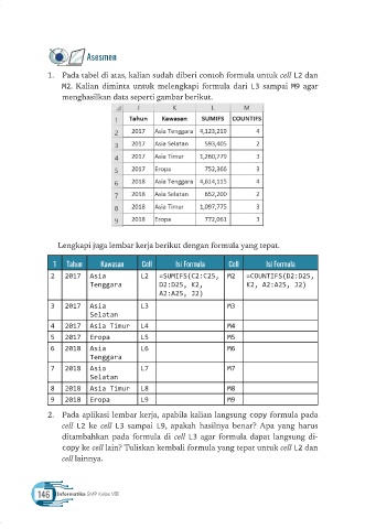copy ke cell lain? Tuliskan kembali formula yang tepat untuk cell L2 dan