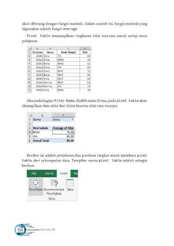 Pivot table menampilkan ringkasan nilai rata-rata untuk setiap mata