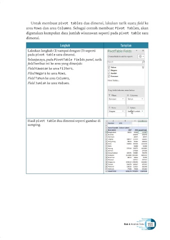 Untuk membuat pivot tables dua dimensi, lakukan tarik suatu field ke