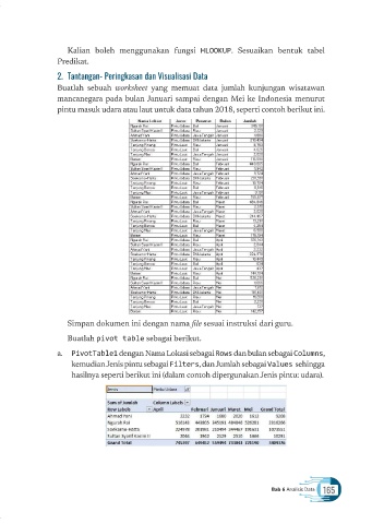 a. PivotTable1 dengan Nama Lokasi sebagai Rows dan bulan sebagai Columns,