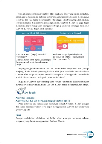 semua instruksi di dalamnya akan dijalankan. Custom Block ini juga dapat