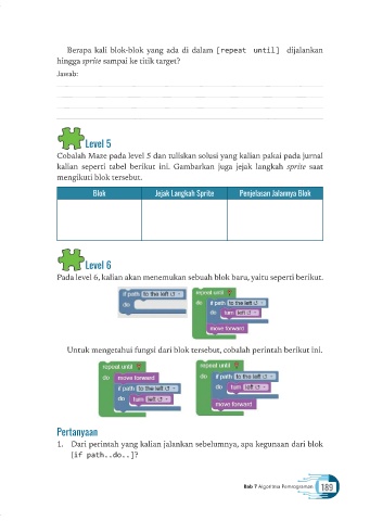 Cobalah Maze pada level 5 dan tuliskan solusi yang kalian pakai pada jurnal