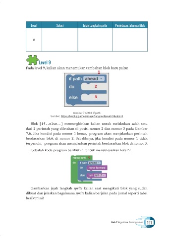 Cobalah kode program berikut ini untuk menyelesaikan level 9.