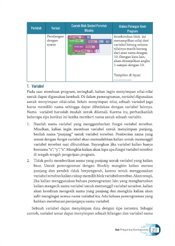 untuk dapat digunakan kembali. Di dalam pemrograman, variabel digunakan