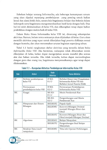 Tabel 1.1 – Kumpulan Aktivitas Pembelajaran Informatika Kelas VIII