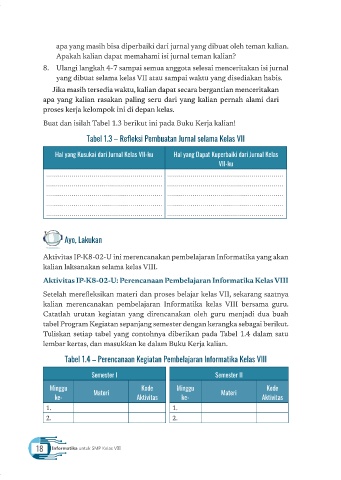 Tabel 1.4 – Perencanaan Kegiatan Pembelajaran Informatika Kelas VIII