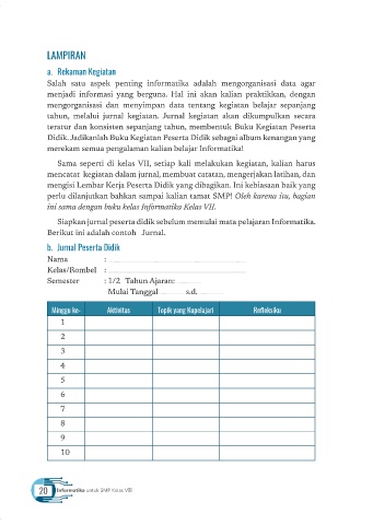 Sama seperti di kelas VII, setiap kali melakukan kegiatan, kalian harus