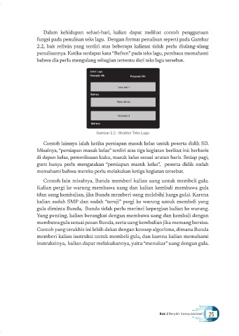 penulisannya. Ketika terdapat kata “Refren” pada teks lagu, pembaca memahami