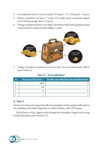 . Karena kapasitas tas hanya gram, kita tidak dapat membawa logam