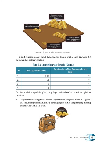 Tabel 2.3 Logam Mulia yang Tersedia (Kasus 2)