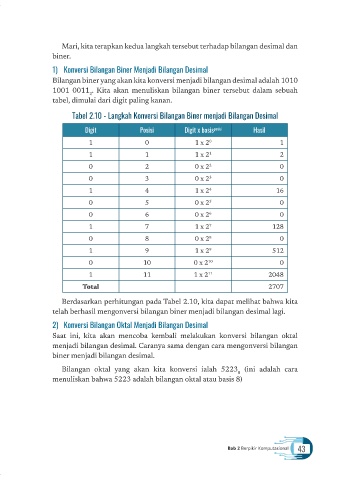 Tabel 2.10 - Langkah Konversi Bilangan Biner menjadi Bilangan Desimal