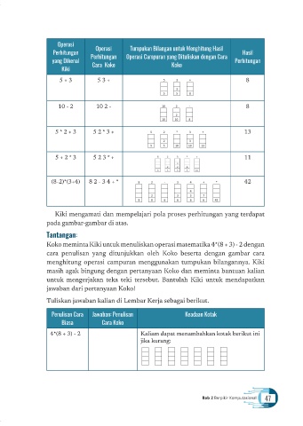 Kiki mengamati dan mempelajari pola proses perhitungan yang terdapat