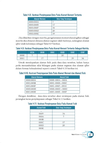 Tabel 4.10. Ilustrasi Penyimpanan Data Pada Alamat Memori dan Alamat Fisik