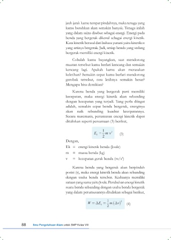 posisi (s), maka energi kinetik benda akan sebanding