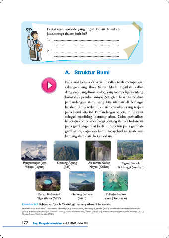Gambar 6.1 Beberapa Contoh Morfologi Bentang Alam di Indonesia.