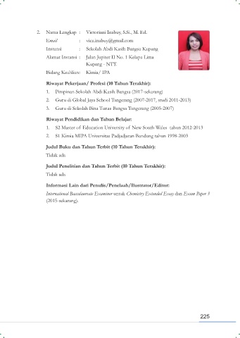 2. Nama Lengkap : Victoriani Inabuy, S.Si., M. Ed.