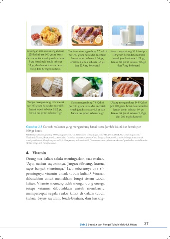 Gambar 2.5 Contoh makanan yang mengandung lemak serta jumlah kalori dan lemak per