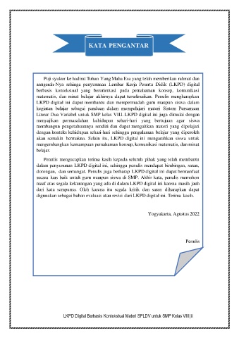LKPD Digital Berbasis Kontekstual Materi SPLDV untuk SMP Kelas VIII| ii