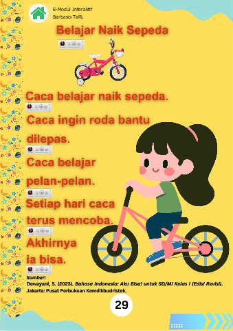 Sumber: Dewayani, S. (2023). Bahasa Indonesia: Aku Bisa! untuk SD/MI Kelas I (Edisi Revisi). Jakarta: Pusat Perbukuan Kemdikbudristek. 29