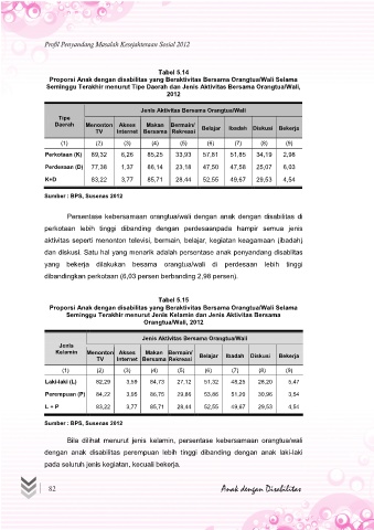 Proporsi Anak dengan disabilitas yang Beraktivitas Bersama Orangtua/Wali Selama