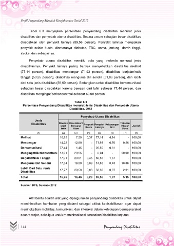 Tabel 8.3 menyajikan persentase penyandang disabilitas menurut jenis