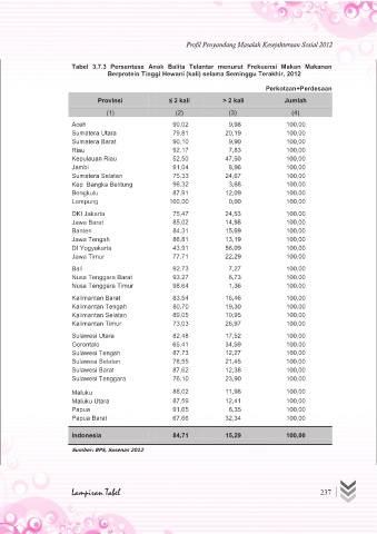 Tabel 3.7.3 Persentase Anak Balita Telantar menurut Frekuensi Makan Makanan