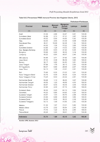 Tabel 6.6.3 Persentase PRSE menurut Provinsi dan Kegiatan Utama, 2012