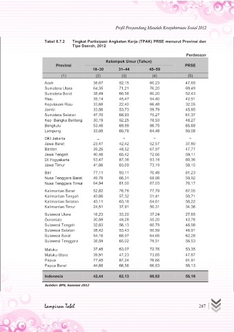 Tabel 6.7.2 Tingkat Partisipasi Angkatan Kerja (TPAK) PRSE menurut Provinsi dan