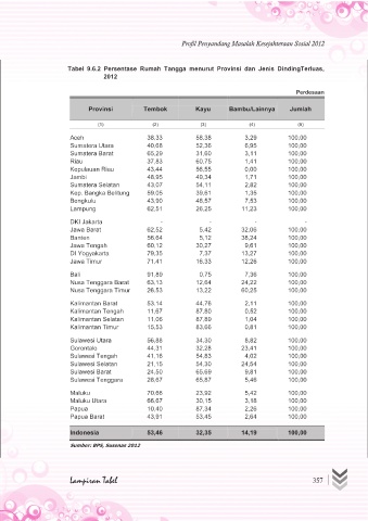 Tabel 9.6.2 Persentase Rumah Tangga menurut Provinsi dan Jenis DindingTerluas,