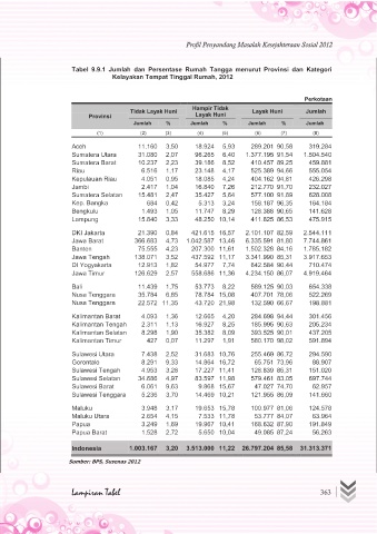 Tabel 9.9.1 Jumlah dan Persentase Rumah Tangga menurut Provinsi dan Kategori