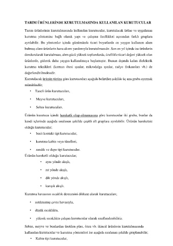 TARIM ÜRÜNLERİNDE KURUTULMASINDA KULLANILAN KURUTUCULAR