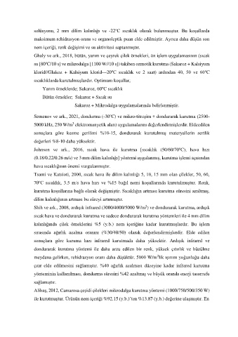 ile kurutmuştur. Ürünün nem içeriği %92.15 (y.b.)’ten %13.87 (y.b.) değerine ulaşmıştır. En