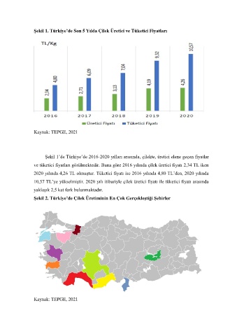 Şekil 1. Türkiye’de Son 5 Yılda Çilek Üretici ve Tüketici Fiyatları