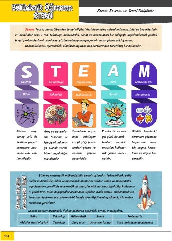 zi disiplinler arası ( fen, teknoloji, mühendislik, sanat ve matematik) bir anlayışla ilişkilendirerek günlük