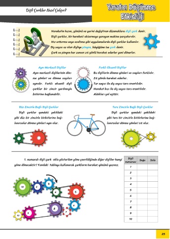 yöne dönecektir? Yandaki tabloyu kullanarak çarkların hareket yönünü yazınız.