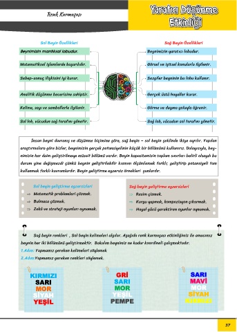 Sağ beyin renkleri , Sol beyin kelimeleri algılar. Aşağıda renk karmaşası etkinliğimiz ile amacımız