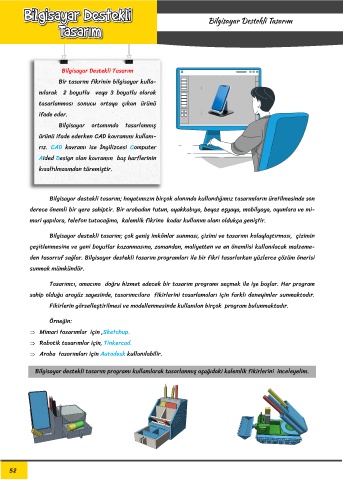 den tasarruf sağlar. Bilgisayar destekli tasarım programları ile bir fikri tasarlarken yüzlerce çözüm önerisi