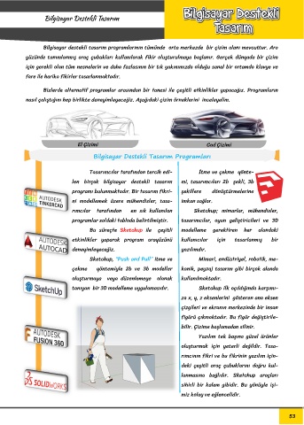 programı bulunmaktadır. Bir tasarım fikri- şekillere dönüştürmelerine