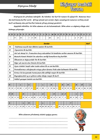 den belirlenmiş harfler vardır. Şifreyi çözmek için soruları doğru cevaplayarak numarası verilmiş ancak